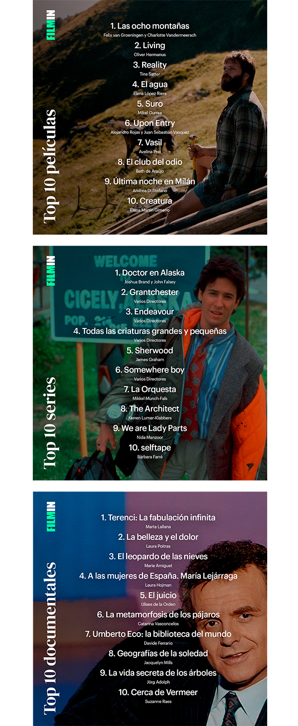 Otros títulos emblemáticos de la plataforma han sido “El sueño de la sultana” (primera película europea de animación que concursó en el Festival de San Sebastián), “Dance First” (el biopic de Samuel Beckett que clausuró el festival donostiarra); o películas premiadas en otros festivales de cine importantes como “Las lecciones de Blaga” (Mejor película en el Festival de Karlovy Vary) o “No esperes demasiado del fin del mundo” (Gran premio del jurado en el Festival de Locarno). Aquellas películas citadas que todavía no han llegado a España forman parte de las adquisiciones de Filmin a lo largo del año, y llegarán en los próximos meses a los cines y/o a la plataforma junto a otras como el Mejor documental de los European Film Awards (“Sauna”), la mejor película latinoamericana de los premios Forqué (“La memoria infinita”), una de las favoritas a los próximos Oscar (“20 días en Mariupol”) así como obras tan relevantes como “Auge y caída de John Galliano”, “El cielo rojo” o “Slow”.