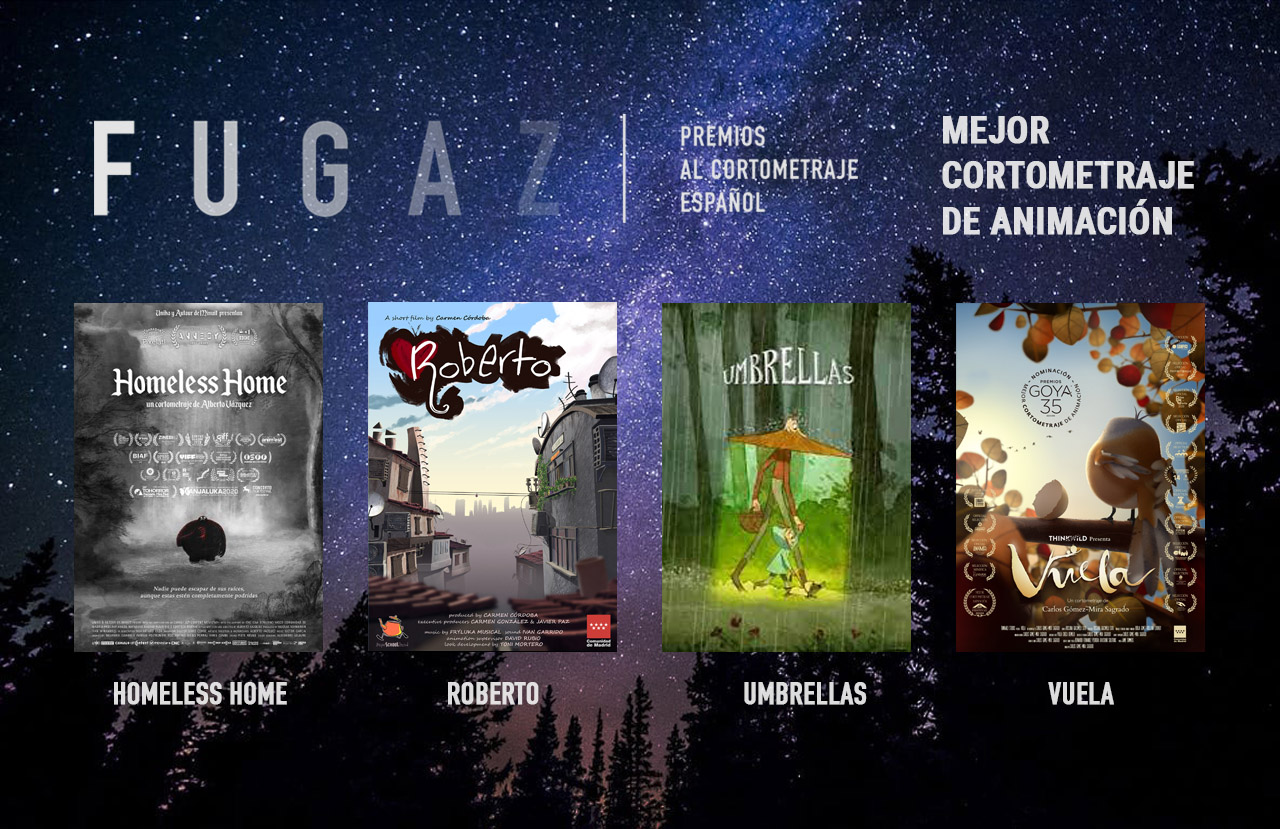 Las nominaciones de los Premios Fugaz se hicieron públicas el 3 de junio y la comisión formada por más de 800 profesionales del sector ha votado desde entonces por sus favoritos en cada categoría. Stanbrook (9), Amianto (8), Lo efímero (7) y Dana y Distancias (5) son los cortometrajes que cuentan con un mayor número de nominaciones.