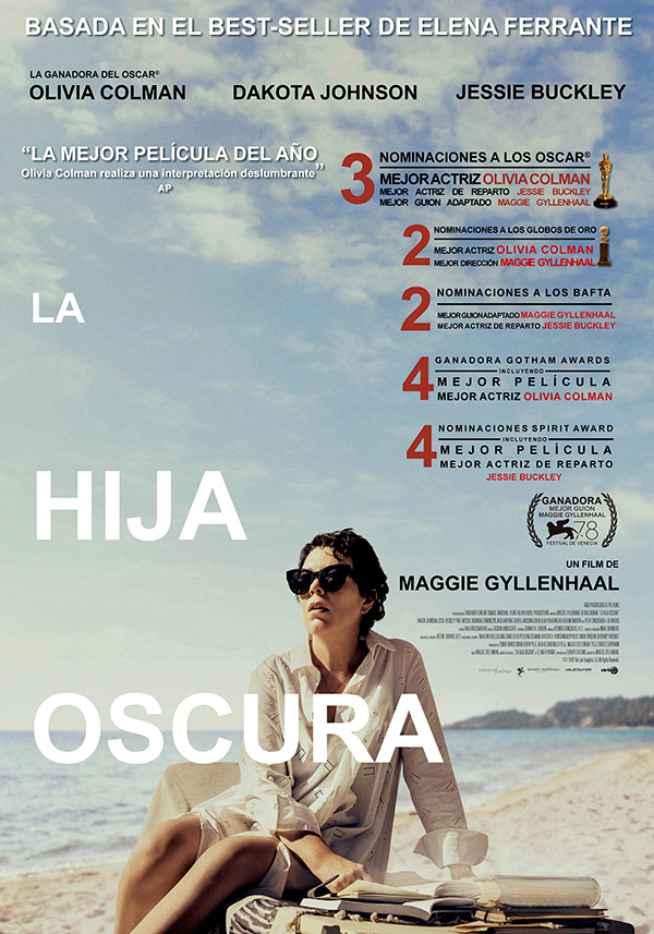 Maggie Gyllenhaal tenía ante sí una tarea difícil cuando decidió debutar como directora y guionista adaptando la novela homónima de Elena Ferrante, en la que la maternidad se explora tanto como concepto general como dando cabida a la individualidad del término: una mujer, en un lugar y un momento determinados, y sujeta a unas circunstancias particulares –mejorables en muchos de los casos–. A Leda el espectador la conoce camino de sus “vacaciones de trabajo”, basadas en leer y preparar sus clases de Literatura Comparada mientras disfruta tumbada al sol en una tranquila playa de la costa italiana. Sin embargo, su pequeño oasis se ve pronto invadido por una estruendosa familia napolitana. A la protagonista le llaman especialmente la atención dos miembros de dicha familia: Nina, una joven madre de veintidós años, y su hija Elena, quienes mantienen una relación aparentemente idílica y llena de complicidad. Desde la Leda observadora la película nos traslada hasta aquellos tiempos en los que ella fue también una madre joven, mientras trataba de compaginar el cuidado de dos hijas pequeñas con los inicios de su carrera académica. Con los flashbacks se nos muestra así la ambivalencia de cualquier relación maternofilial: de los juegos y el lenguaje común que estos crean entre las tres a las peleas de las que se deriva un agotamiento físico y mental aumentado por la figura ausente de un marido que vive para su carrera porque se lo permite la existencia de Leda.