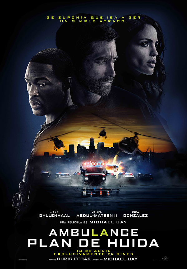 Michael Bay arranca este año con Plan de Huida (Ambulance); otra de sus ficciones cargadas de acción frenética, con Crhis Fedak en el guion y con Jake Gyllenhaal (en el papel de Danny Sharp), Yahya Abdul-Mateen II (interpretando a Will Sharp) y Elza González (como Cam Thompson).