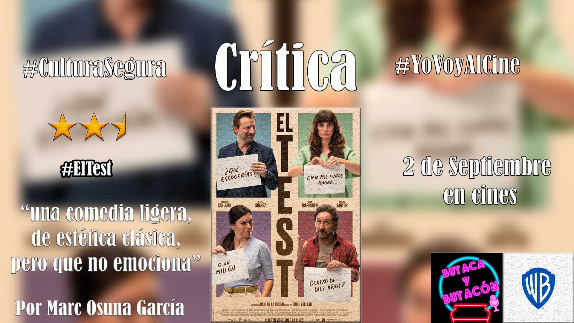 En conclusión, aunque se trate de una película entretenida de estética clásica, El Test no va más allá; se limita a una comedia ligera con tintes de buenas actuaciones y humor extra ligero sin más pretensiones. Si bien se trata de un proyecto que podría dar más de sí y atreverse sin ningún problema a ser más gamberro o agresivo, ha decidido quedarse en una comedieta de final abierto que entretiene, pero no emociona.