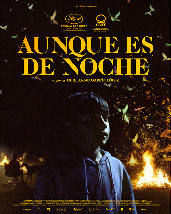 AUNQUE ES DE NOCHE es el nuevo cortometraje de ficción del cineasta Guillermo García López, ganador del Goya a Mejor Documental por Frágil equilibrio (2016). Tuvo su preestreno recientemente en la Sección Oficial del Festival de Cannes a competición, nominado a la Palma de Oro, y competirá en la Sección Zabaltegi-Tabakalera del Festival de San Sebastián.