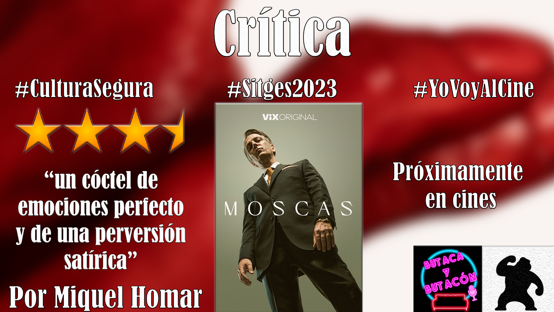 Aritz Moreno protagonizó uno de los debuts más interesantes de la última década en el panorama español. Su indescriptible Ventajas de Viajar en Tren se estrenó en 2019 en el festival de Sitges, en una proyección que desconcertó y fascinó al público. Su ópera prima cautivó a los amantes del cine weird y no dejó a nadie indiferente, generando tanto fervientes detractores como apasionados defensores, creando un fenómeno de culto en torno al filme. Esto le valió a la película cuatro nominaciones a los premios Goya, incluyendo la de mejor director novel. Cuatro años después, el director donostiarra regresa a la costa del Garraf con su segunda obra: Moscas, un proyecto original para la plataforma de streaming hispanoamericana Vix, producido por Morena Films.