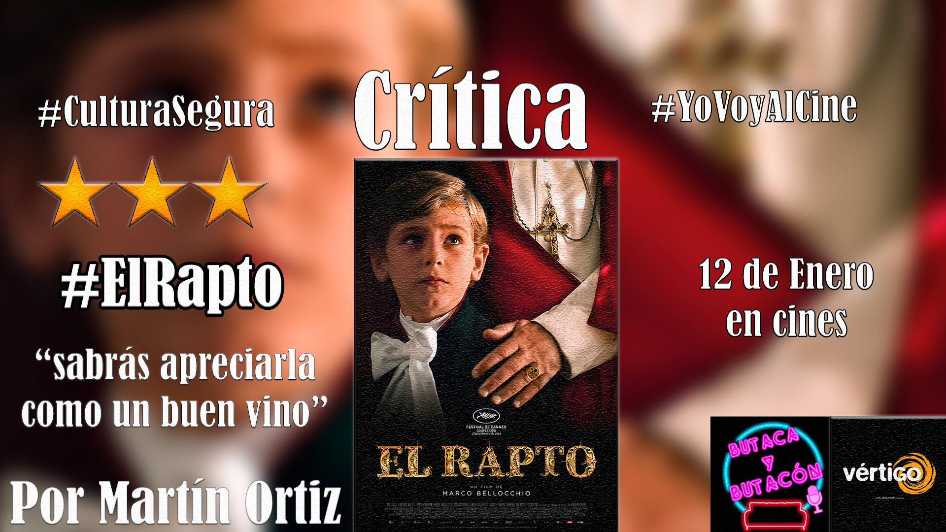 ‘El Rapto’ es una gran propuesta con aromas de cine clásico que pone en el punto de mira al estamento eclesiástico con elegancia. Presenta un empaque y una realización de alta calidad durante todo el metraje. Si disfrutas de películas de cocción lenta, sabrás apreciarla como un buen vino, ya que es una película para saborear. Disfrutarás de sus grandes interpretaciones, la sencillez de su planificación, la potencia de su banda sonora y el amargo regusto que te deja en el paladar tras llegar a los créditos finales.
