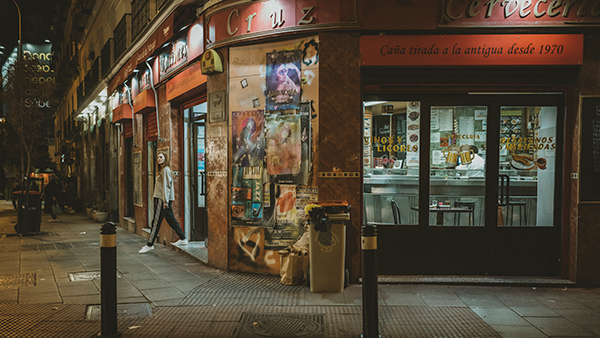 Es curioso como poco a poco, la cotidianidad se va enrareciendo, dando lugar a una especie de Alicia en el país de las maravillas en el centro de Madrid. Un espacio urbano que da origen a toda una panoplia de personajes extravagantes, ya sea una taxista, un repartidor de Glovo o un grupo de performances. La noche te confunde, y en la capital aún más. Eso es lo que nos quiere transmitir Eva Hache.