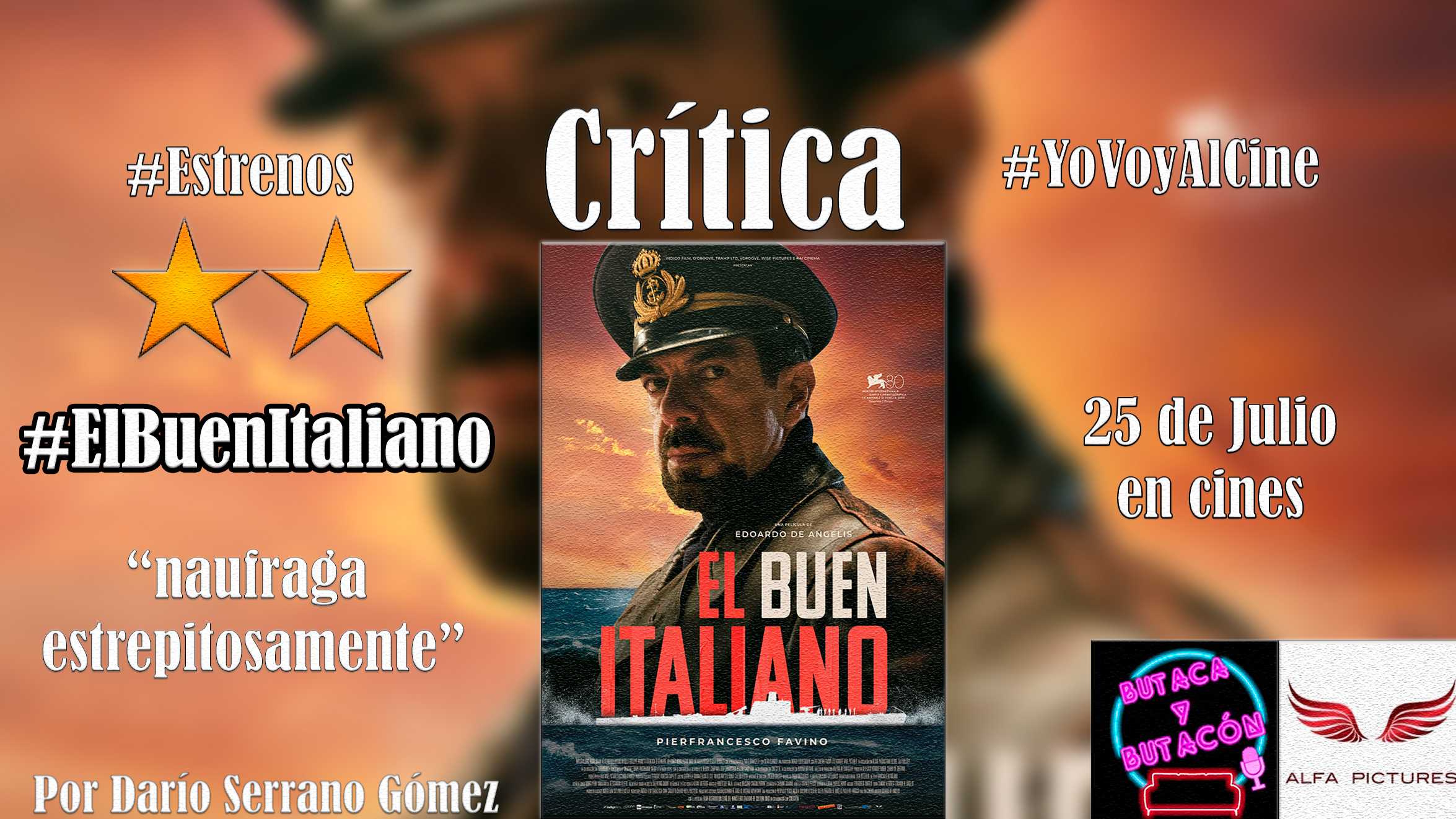 Si se busca una buena película de submarinos, no creo que El buen italiano vaya a satisfacer a mucha gente. Es rancia, algo efectista y tarda en arrancar. Aun así, tiene algunas secuencias rescatables y unas interpretaciones, sobre todo de su protagonista y comandante Pierfrancesco Favino, muy favorables para el conjunto.