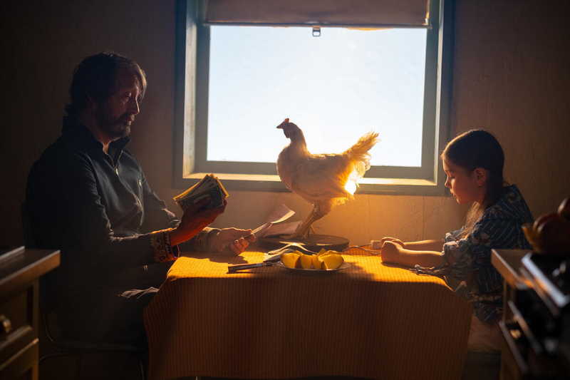Desde su comienzo no puedes evitar preguntarte si todo lo que ocurre lo ves desde el punto de vista de la imaginación de Aurora (Sophie Sloan) o si realmente existe el monstruo de debajo de su cama. Es un poco lo que le pasa al vecino (Mads Mikkelsen), un sicario que cuando recibe la visita de la niña queriendo contratar sus servicios, enseguida descarta que exista un monstruo de verdad. La teoría de él es que como se ha ganado muchos enemigos, fueron a matarlo y se equivocaron de apartamento. Porque, al fin y al cabo, todos sabemos que los monstruos no existen, ¿o sí?