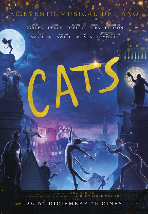 La historia es una adaptación del musical clásico, una obra que logró la friolera de 7 premios Tony y el récord de permanencia hasta ese momento en la historia de Broadway (21 años estuvo en cartel). Cats nos cuenta la historia de una banda de gatos callejeros, llamada Jélicos, durante la noche en la que se elegirá el gato que irá al cielo, renaciendo en una nueva vida mucho menos dura que esta. Esa misma noche se una a la banda Victoria, una joven gata que ha sido abandonada por sus dueños en un callejón de Londres y que irá descubriendo cómo son sus nuevos compañeros mientras un malvado felino, Macavity, intenta arruinar la noche.