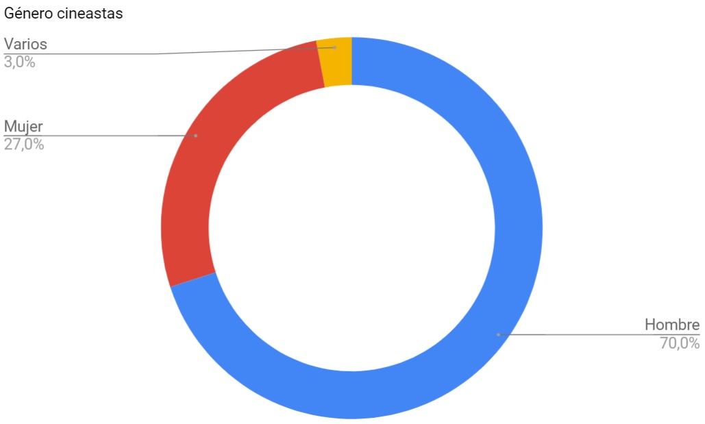 Los realizadores varones han dirigido el 70% de los cortometrajes españoles, aunque el índice de directoras sigue subiendo y alcanza ya el 27%. El 3% restante pertenece a cortos dirigidos por varios cineastas de sexos dispares.