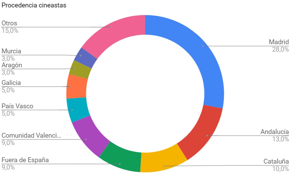 La mayoría de ellos/as tiene entre 31 y 40 años (39%) y ha nacido en Madrid (28%), Andalucía (13%) y Cataluña (10%). Además, un 19% de los cortometrajistas que se abren paso en la capital son originarios de otras comunidades.