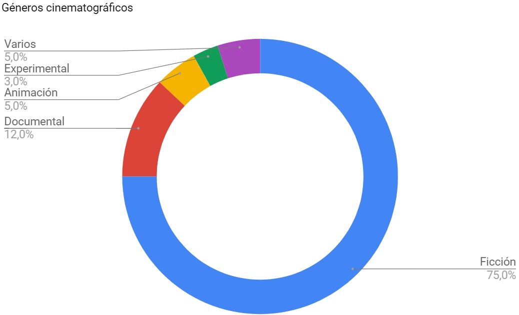 Las realizadoras siguen patrones similares, pero están más abiertas a explorar otros géneros cinematográficos. El 17% de las obras presentadas por mujeres pertenece al género documental, cifra que en los hombres desciende al 11% (en beneficio de la ficción). Algo similar sucede con el cine experimental, con el añadido de que hay más cortometrajes con esta descripción dirigidos por mujeres (9 obras) que por hombres (6).